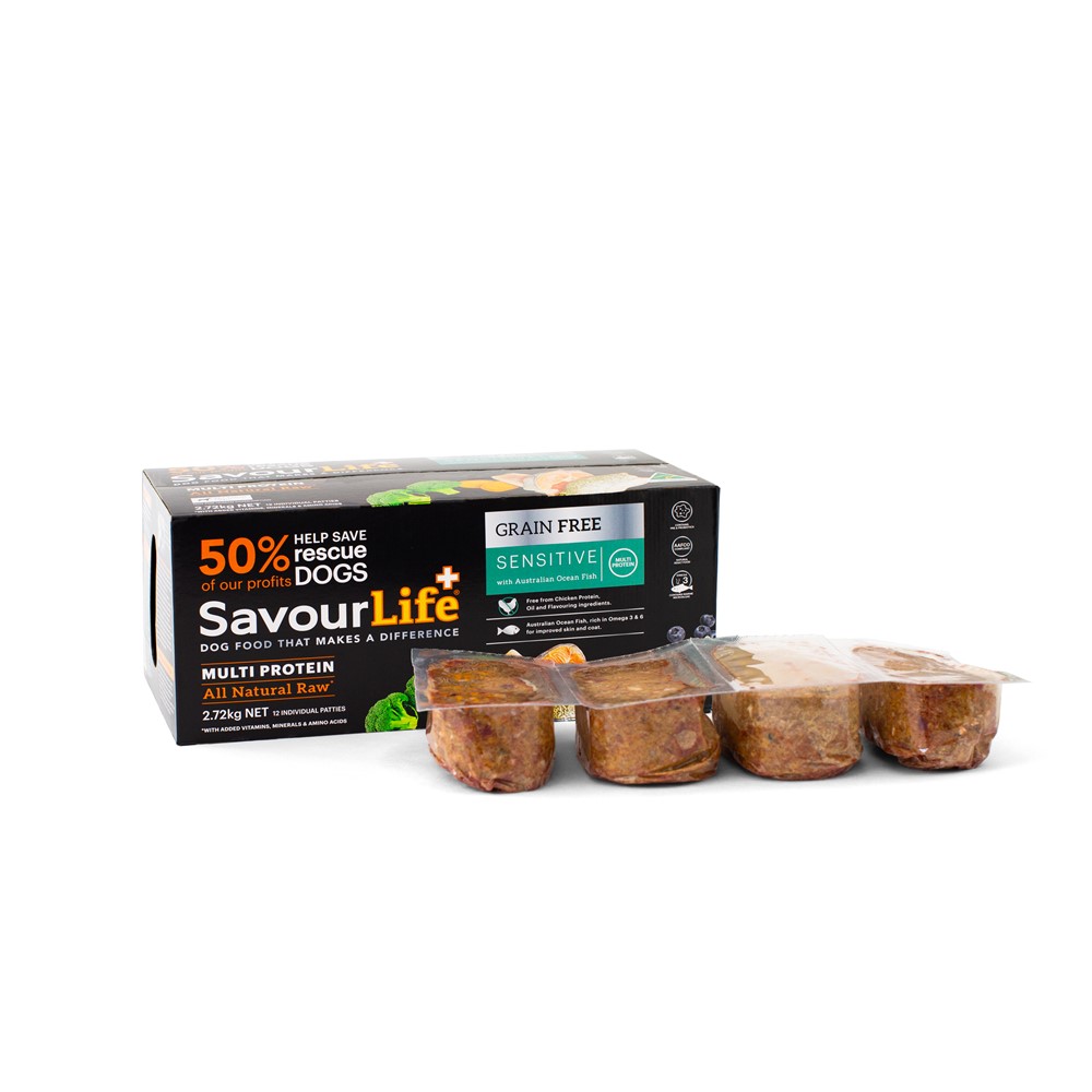 This recipe is a grain-free, hypoallergenic formula made with Australian Ocean Fish rich in Omega 3 & 6 to support healthy skin and a shiny coat, while promoting strong muscles, joints, digestion, and overall health and vitality with a blend of high-quality Australian meat, amino acids, and finely ground bone and cartilage.