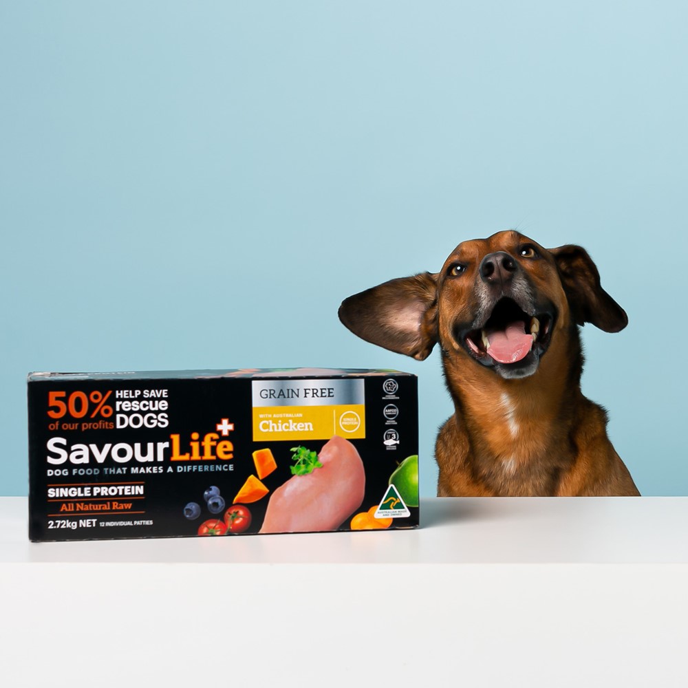 Our All Natural Raw Adult Chicken Frozen dog food, is a Single Protein meal that is filled with the finest natural Australian ingredients. With superfood inclusions like blueberries, broccoli, tomatoes, carrot, apples and flaxseeds; plus vitamins, minerals, natural pre-biotics, probiotics and amino acids. Plus, it’s grain free, gluten free and hypoallergenic, and contains no artificial colours, flavours or preservatives.