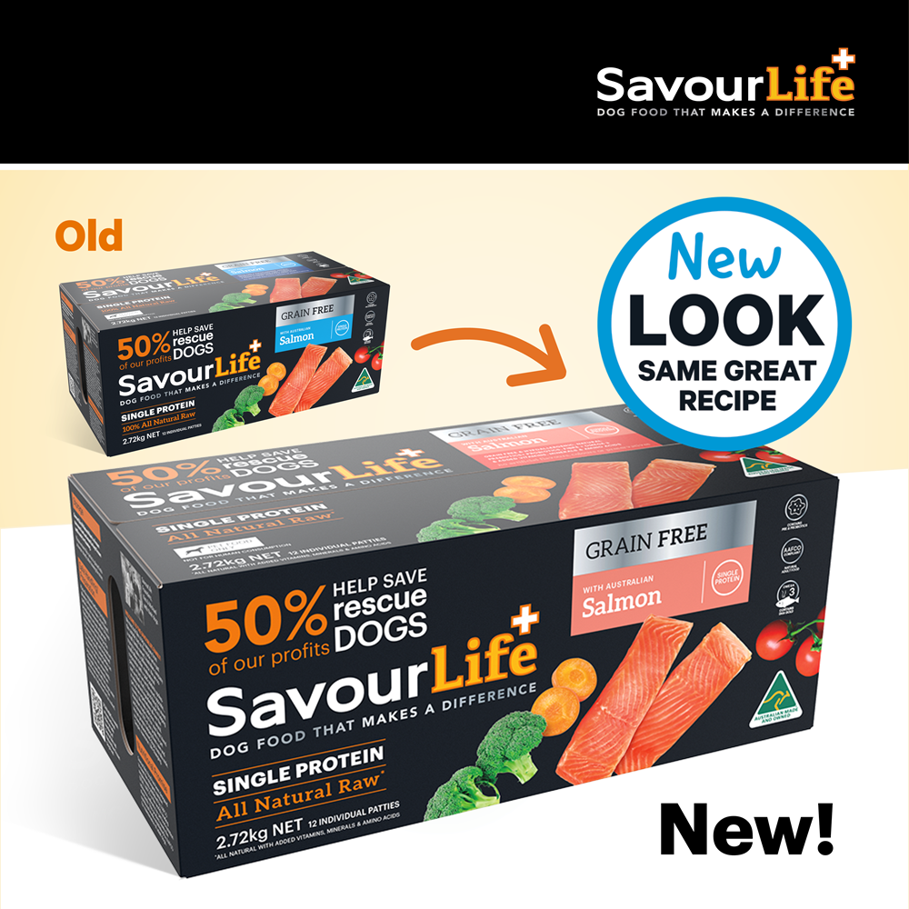 Our All Natural Raw Adult Salmon Frozen dog food, is a Single Protein meal that is filled with the finest natural Australian ingredients. With superfood inclusions like broccoli, tomatoes, carrot, apples, oranges and flaxseeds; plus vitamins, minerals, natural pre-biotics, probiotics and amino acids. Plus, it’s grain free, gluten free and hypoallergenic, and contains no artificial colours, flavours, or preservatives.