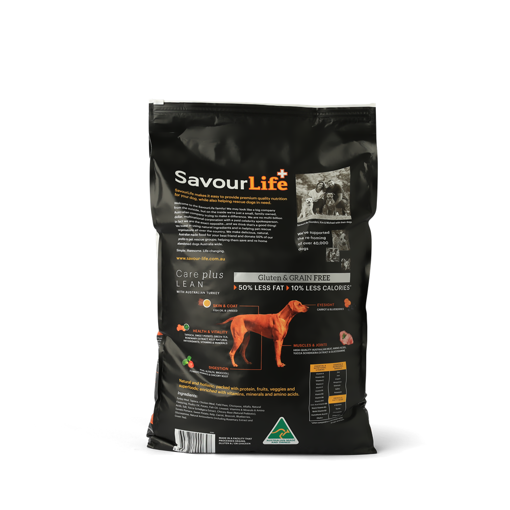 SavourLife’s Grain Free Lean with Australian Turkey is a special formula designed to help with weight management and comes with reduced fat and calorie levels.
