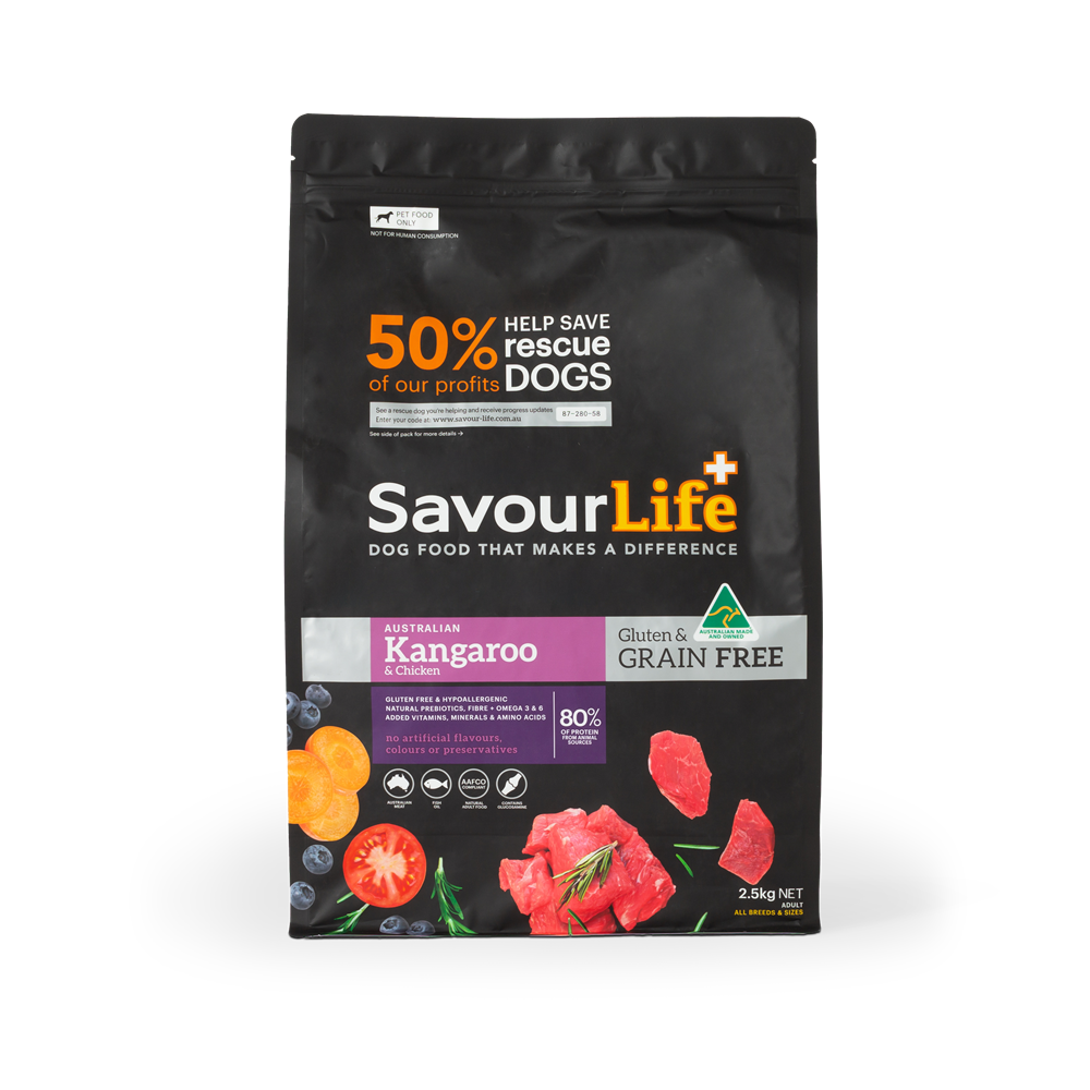 SavourLife’s Grain-Free Kangaroo & Chicken is a healthy choice for all dogs, and contains one of the most popular, low-allergen, lean protein sources available. It is also a tasty choice for those who need to watch their weight, or for those who have a lower fat dietary requirement, as it contains a lower fat profile and contains slightly less calories per serve.