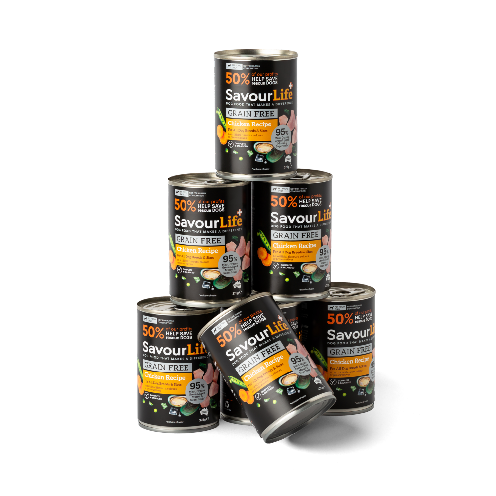 SavourLife's Grain Free canned dog food recipes have been specially batched to consist of 95% Meat, Organs, New Zealand Green Lipped Mussel and Superfoods; and topped with all the essential vitamins & minerals to create a complete and balanced meal. The result is an irresistibly tasty, loaf-like meaty food that is packed with nutrients that closely mimic your dog’s ancestral diet ensuring they thrive every day.
