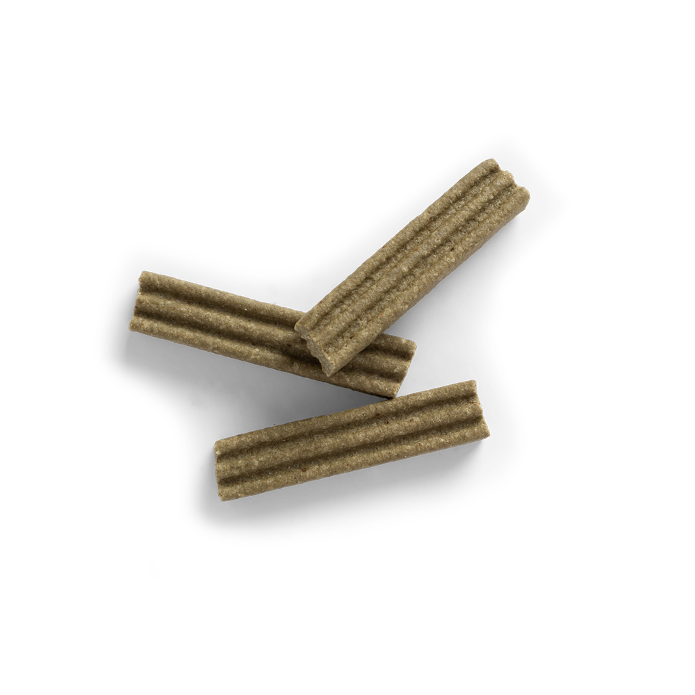 One bar per day to complement a complete oral care routine. Not intended for puppies under 6 months. Always monitor dog when feeding to ensure they are adequately chewing. Any food item that is gulped can be harmful to your dog. Ensure clean fresh water is always available. Intended for occasional or supplemental feeding, not as a complete meal.